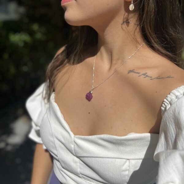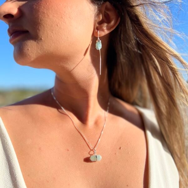 Pingente pequeno na pedra bruta Água Marinha com acabamento em prata 925.