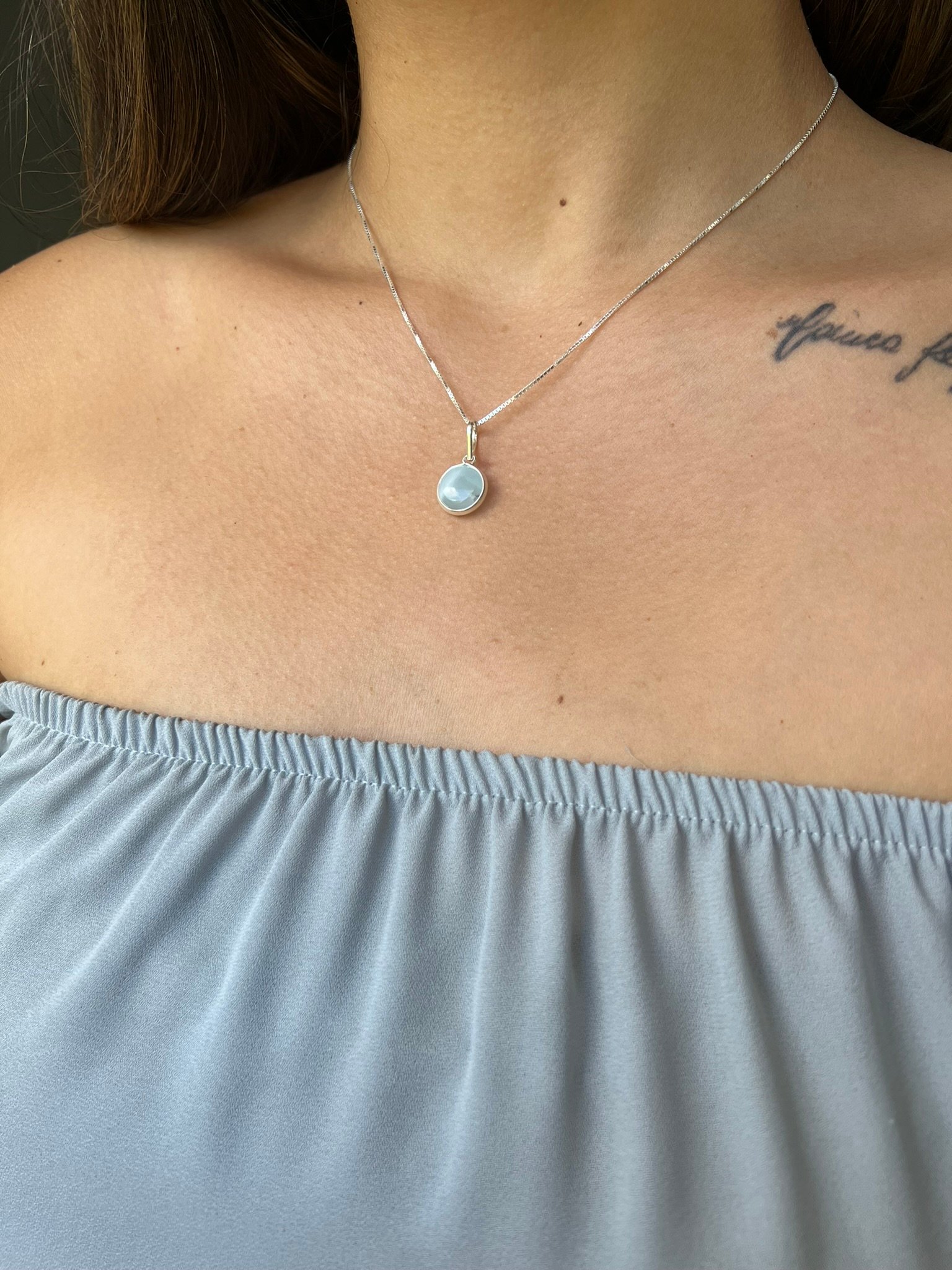 Pingente de Larimar lapidada, acabamento em prata 925.