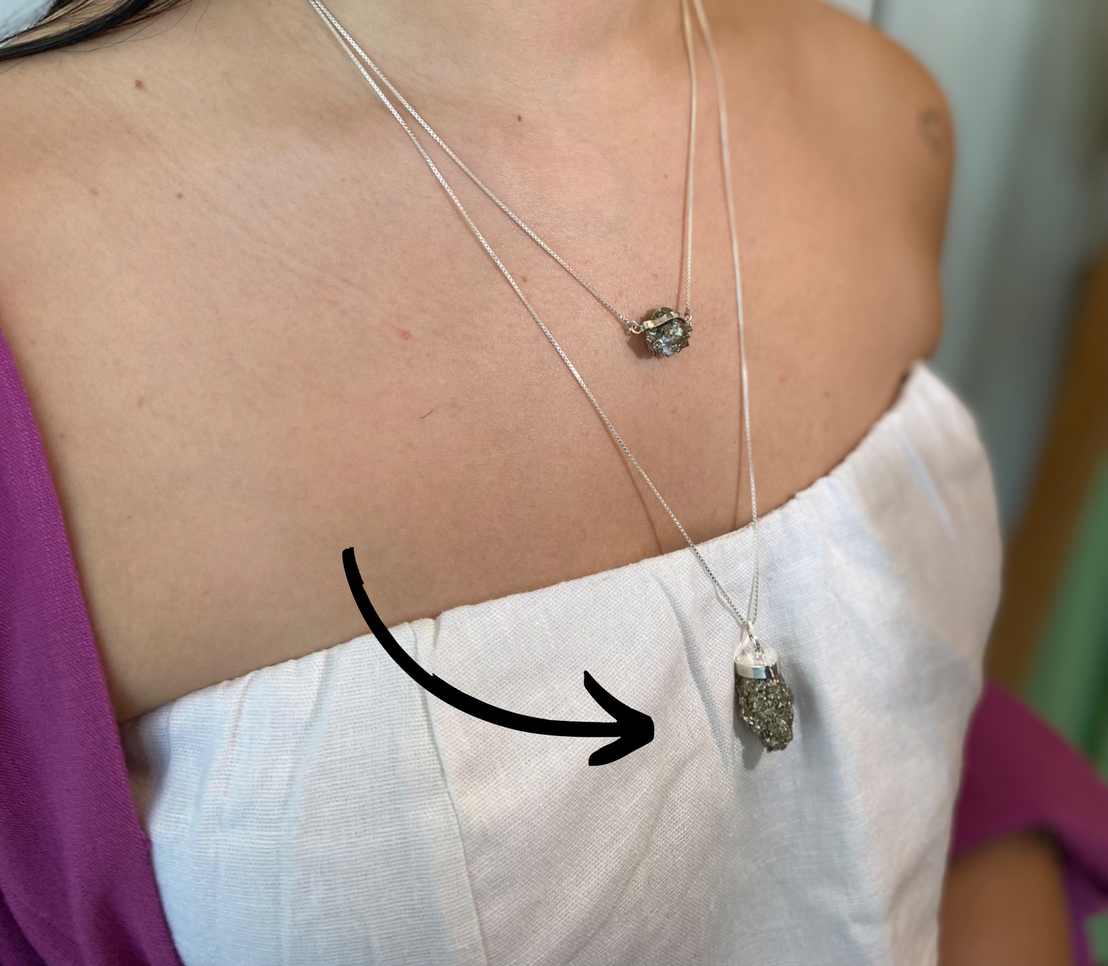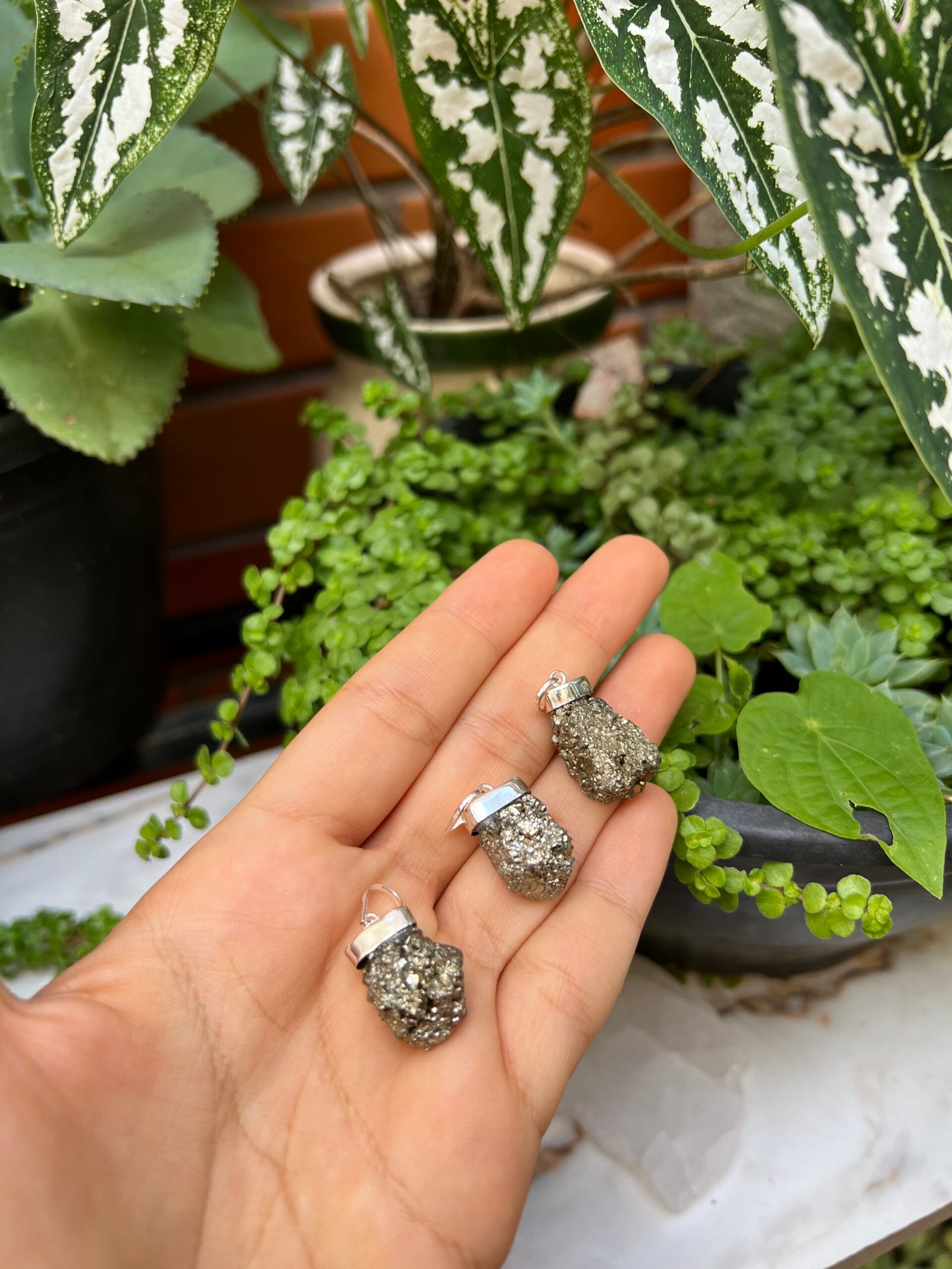 Um pingente médio na pedra Pirita bruta com acabamento em prata 925.